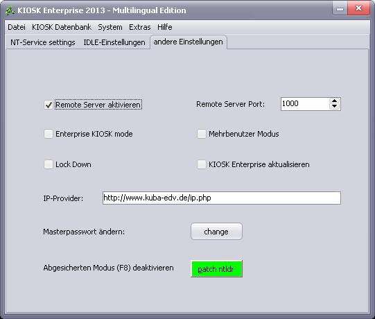 Falls KIOSK nicht aktiviert wurde erscheint im
